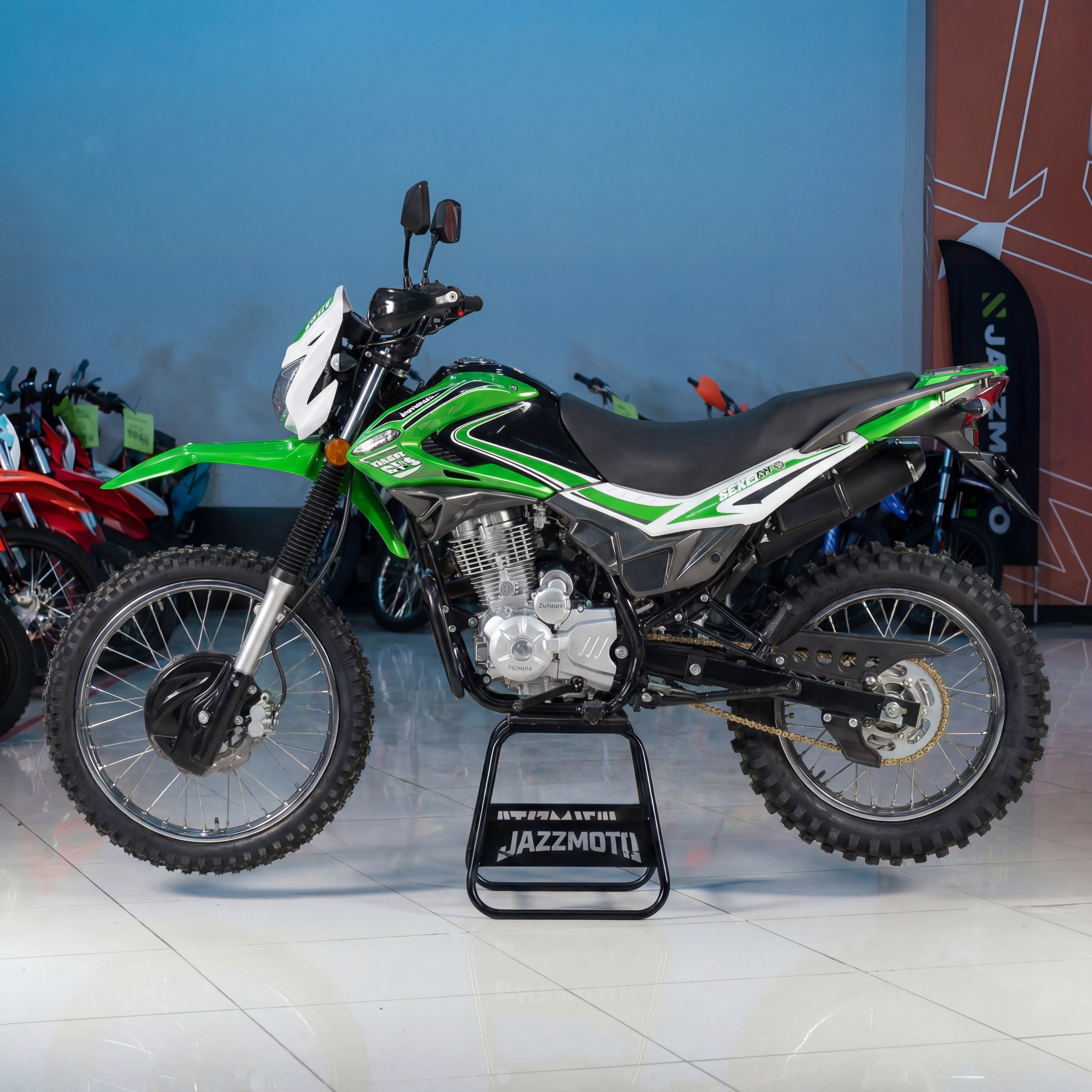 Regulmoto SK 200GY-5 – еще один представитель мототехники двойного назначения, созданный для повседневной эксплуатации в самых разных условиях. Этот байк с надежным малокубатурным двигателем подойдет как для утилитарных поездок по дорогам общего назначения, качество которых далеко от идеального, так и для передвижения по пересеченной местности, тропинкам и проселкам. Мотоцикл производится компанией Senke – одним из лидеров китайской мотоиндустрии, чья продукция пользуется заслуженной популярностью благодаря современному внешнему виду, высокому качеству узлов и комплектующих, простоте и надежности использования и невысоким затратам на текущее сервисное обслуживание.