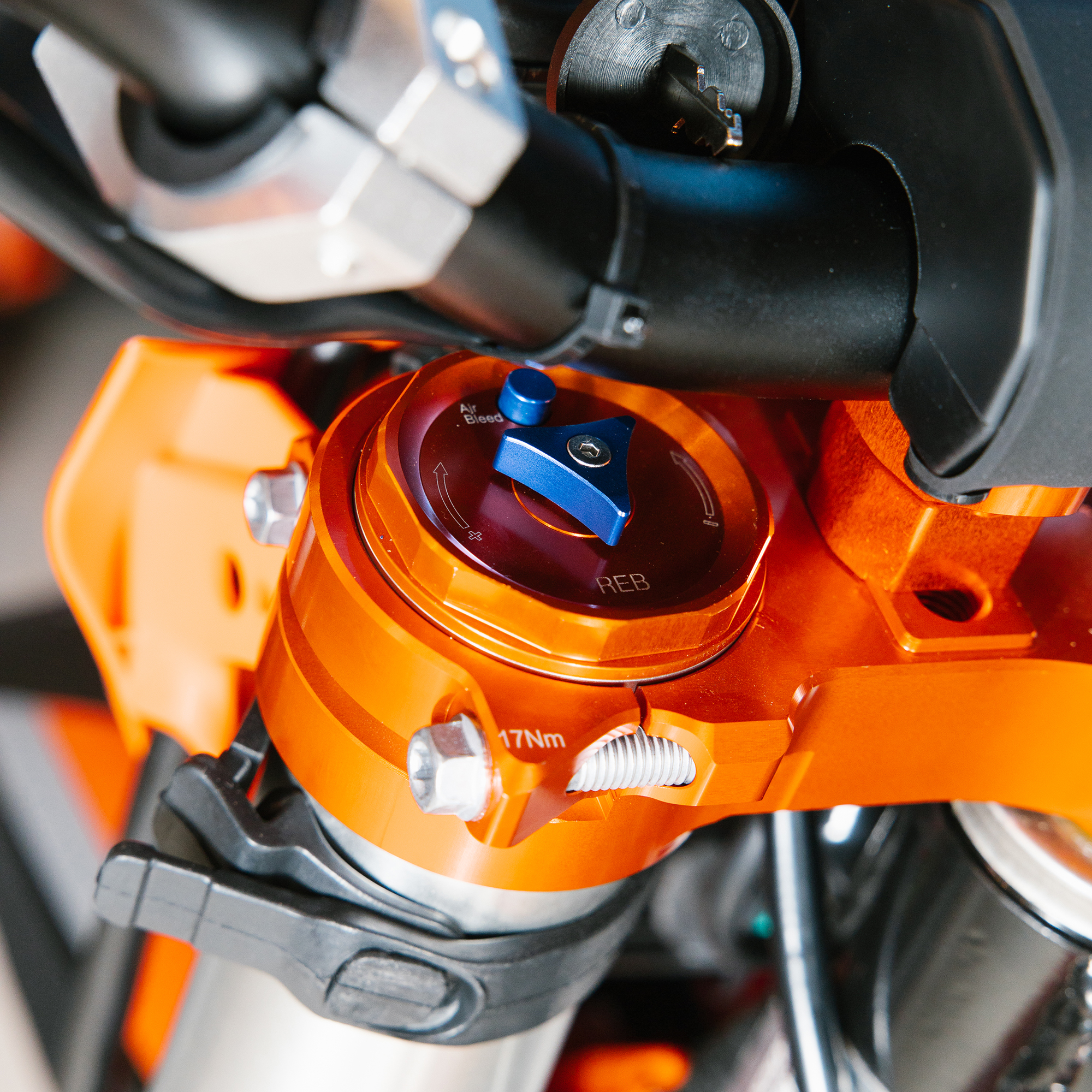 Электронная приборная панель, противоскользящее сиденье, защита рамы от протирания ботинками, подножки «AJ1» (алюминий 6063 с шипами), подножка боковая «AJ1» (алюминий 7075-Т6), невозгораемый воздушный фильтр «AJ1» – Twin Air с увеличенной площадью, ведомая звезда «AJ1» (520, алюминий 7075-Т6), защита рук, грипсы OTOM/Lock-On, передние и задние буксаторы «AJ1», откидные алюминиевые рычаги 270°, алюминиевая лапка КПП, пульт света КТМ, LED фара 5 линз, моточасы, фрезерованная траверса X trig .